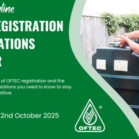 2nd October 2025 | OnlineKicking off the autumn webinar series with essential industry insights! Join us on 2nd October to learn about the OFTEC registration process and key regulations you need to know. Whether you're starting out or need a refresher, this session will ensure you're fully equipped to meet industry standards. Don't miss this opportunity to stay compliant and stay ahead!